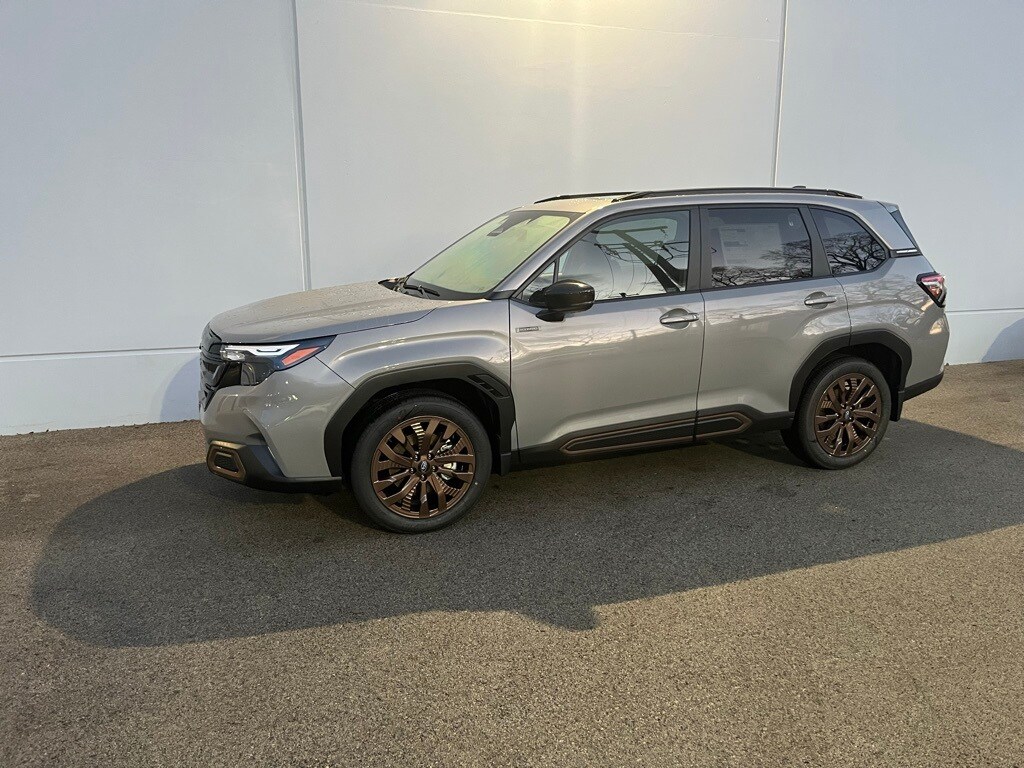 *JUST REDUCED*, PRICE BELOW MARKET VALUE!, Forester Hybrid Sport, Multiple Finance Options Available, GREAT BUY!!!, AWD / 4WD / 4x4, 2.5L 4-Cylinder DOHC 16V, 11 Speakers, 4-Wheel Disc Brakes, ABS brakes, Air Conditioning, Alloy wheels, AM/FM radio: SiriusXM with 360L, Anti-whiplash front head restraints, Auto High-beam Headlights, Automatic temperature control, Brake assist, Bumpers: body-color, Compass, Driver door bin, Driver vanity mirror, Dual front impact airbags, Dual front side impact airbags, Electronic Stability Control, Emergency communication system: MySubaru Safety (3-year free trial), Exterior Parking Camera Rear, Four wheel independent suspension, Front anti-roll bar, Front Bucket Seats, Front Center Armrest, Front dual zone A/C, Front fog lights, Front reading lights, Fully automatic headlights, harman/kardon® Speakers, Heated door mirrors, Heated Front Bucket Seats, Heated front seats, Illuminated entry, Knee airbag, Low tire pressure warning, Navigation system: TomTom Navigation w/what3words, Occupant sensing airbag, Outside temperature display, Overhead airbag, Overhead console, Panic alarm, Passenger door bin, Passenger vanity mirror, Power door mirrors, Power driver seat, Power Liftgate, Power moonroof: Panoramic, Power steering, Power windows, Radio data system, Radio: Subaru 11.6" Multimedia Navigation System, Rear anti-roll bar, Rear seat center armrest, Rear window defroster, Rear window wiper, Remote keyless entry, Security system, Speed control, Speed-sensing steering, Split folding rear seat, Spoiler, Sport StarTex Upholstery, Standard Model, Steering wheel mounted audio controls, Tachometer, Telescoping steering wheel, Tilt steering wheel, Traction control, Trip computer, Turn signal indicator mirrors, Variably intermittent wipers, Wheels: 19" x 7.5 J Bronze Finish Aluminum-Alloy, 2.5L 4-Cylinder DOHC 16V. New Price! 2025 Subaru Forester Hybrid Sport